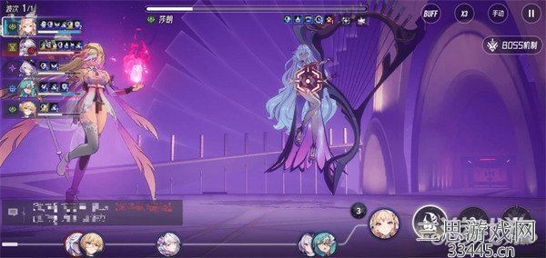 莎朗是我们爬塔中会遇到的难度boss,她总共有3个阶段,第1阶段我们通过酣梦的“睡眠花苞”,以及芙蕾雅的技能二来抵抗住持续伤害,同时去压莎朗的血线,等压到还有一丝血的时候,让凌罗开大附加免疫效果,然后下一位角色平a收掉进入2阶段;在2阶段花骨朵会随机选择两位角色来附加标记,当被标记者行动时,花骨朵若没有处于不可行动状态,会眩晕一位并立刻行动一次;