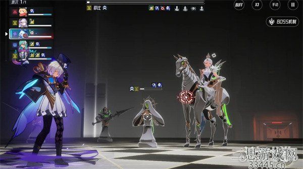 不过因为我们此时会有4位角色都带有免疫,所以她的标记大概率会空,或者只有1个,我们通过酣梦睡眠控制去避免被控,同时全力输出就可以进入3阶段,在3阶段当两朵花没有死时boss会处于无敌状态之中,1朵花死亡boss会进入3回合倒计时,结束后会复活花朵并回复血量,这里利用酣梦的睡眠拉扯,把两朵花都打到丝血,最后夜离大招锁定boss一次性收掉两只花,重复几次就能顺利击败。