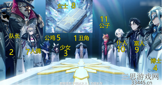 除去上述 7位,还未实锤座次的仅剩博士、队长、仆人、木偶4位执行官,但按照公子语音“执行官席位按照实力划分”的线索,我们可以进行一些推敲——队长受人尊敬,问话博士的语气比较强硬,且公子说“可能我的位次相对他太靠后了”,可以暂且把队长放在第2席、把博士放在第4席。
