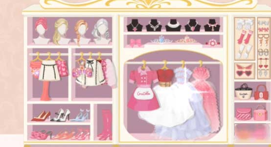 1、我们要去整理芭比娃娃的衣柜了,就连柜子也是粉粉嫩嫩的。