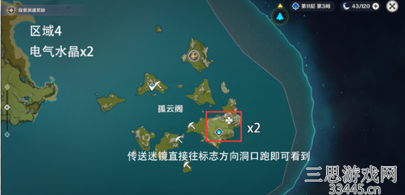电气水晶的刷新时间为48小时,电气水晶5个区域共35个