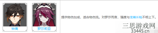 钟离、罗莎莉亚该武器可以提高物理伤害,适合伤害流。