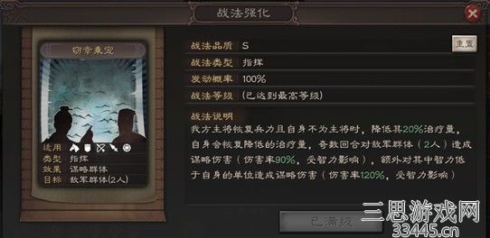 很有意思,就像一个便携简约版的SP诸葛亮。这个战法肯定会惠及众多,低几率的优质主动战法。