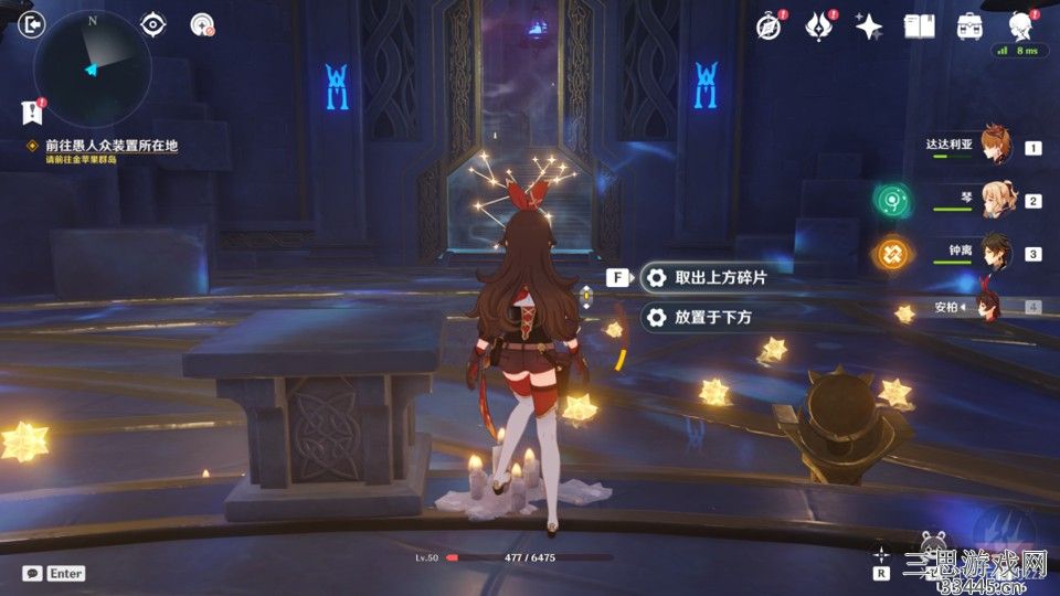 4.随后我们继续进入,会来到一个大厅,里面有我们第六个宝箱和我们的海螺,图中的机关是要依靠踩的,但是我们不能踩得太快,你必须要等星星完全停住再踩,这个地方我卡了30分钟,我不知道大家的这部分星图是否一样,要是不一样,可以看地下星图。