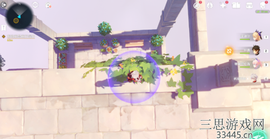 1、与众人对话后,尝试使用奇怪的装置,第一处解密在秘境入口左手边我们会看到第一个幽邃鸦眼,互动后讲目标调整至如图位置,会看到屏幕上方的字变成“周围的环境似乎发生了变化···”并且屏幕上出现紫光,就表示此机关解密成功。
