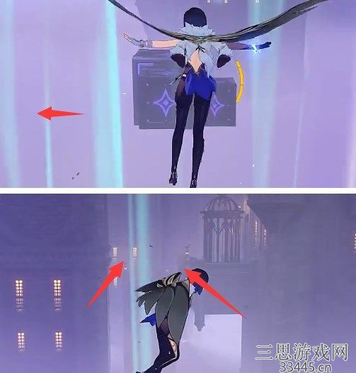 15、开启宝箱后,根据如下图中箭头引导运动,到达终点处断层此处我们需直接跳过。