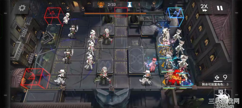 依次部署先锋,山,煌,粉毛→小火龙,闪灵↑塞雷娅,流明→这关小火龙没挂就行,粉毛可以换其他术士帮山处理小怪,后面直接被灭迹人远程秒掉,交给小火龙打2路就行。