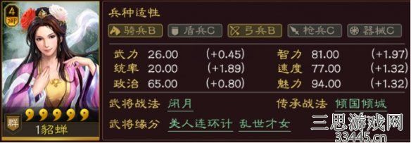 兵种适性方面,以弓盾为主、骑兵次之,3位仙人也都在群雄之中。朋友们在阵容搭配的时候,尽量以兵种为优先,再加入有强度的武将即可。