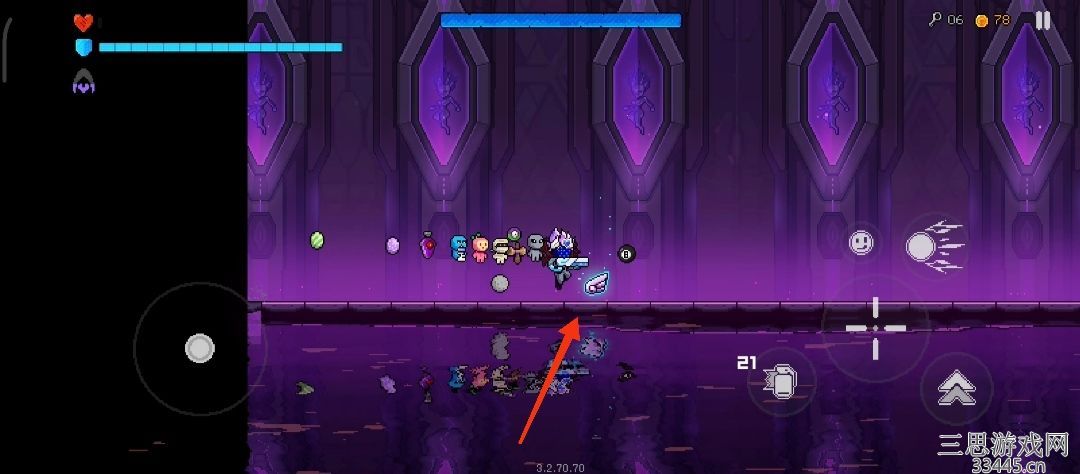 雅典娜行动方法:空中飞行。我们在进boss房间请及时捡到地面上的小翅膀即可获得飞行能力。
