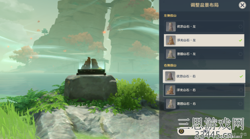 传送到万叶活动「更改盆景布局」,调整左右两侧假山,浮光·左+浮光·右(2+2)