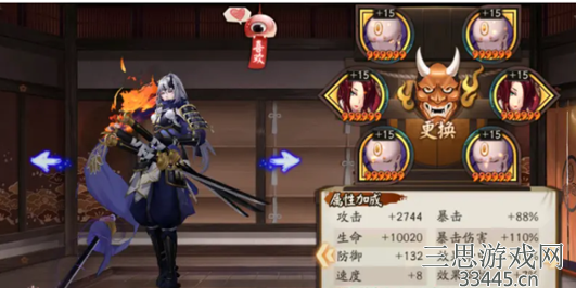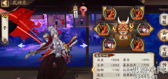 2、狰(功功爆/爆伤满爆)可以玩反击流,狰也是个不错的选择。首先鬼切能够戴着狞,戴着狞的作用众所周知,那就是在受到攻击时能够有反击的机会。许多式神在穿戴狞后基本上都不会受到伤害,只是鬼切不同。鬼切三刀之中有两把会有降低治疗与防御。被动也可以让鬼切瞬间获得高额伤害。所以在作战中同样令敌人感到头痛。