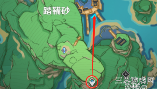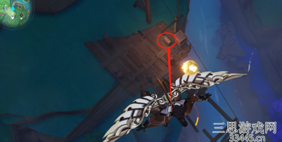 然后我们从宝箱的位置,往西北方向移动,走到所指的位置