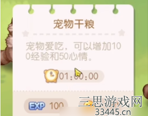 效果:能够增加100点的经验值和50好感度,喂食存在一个小时的冷却。