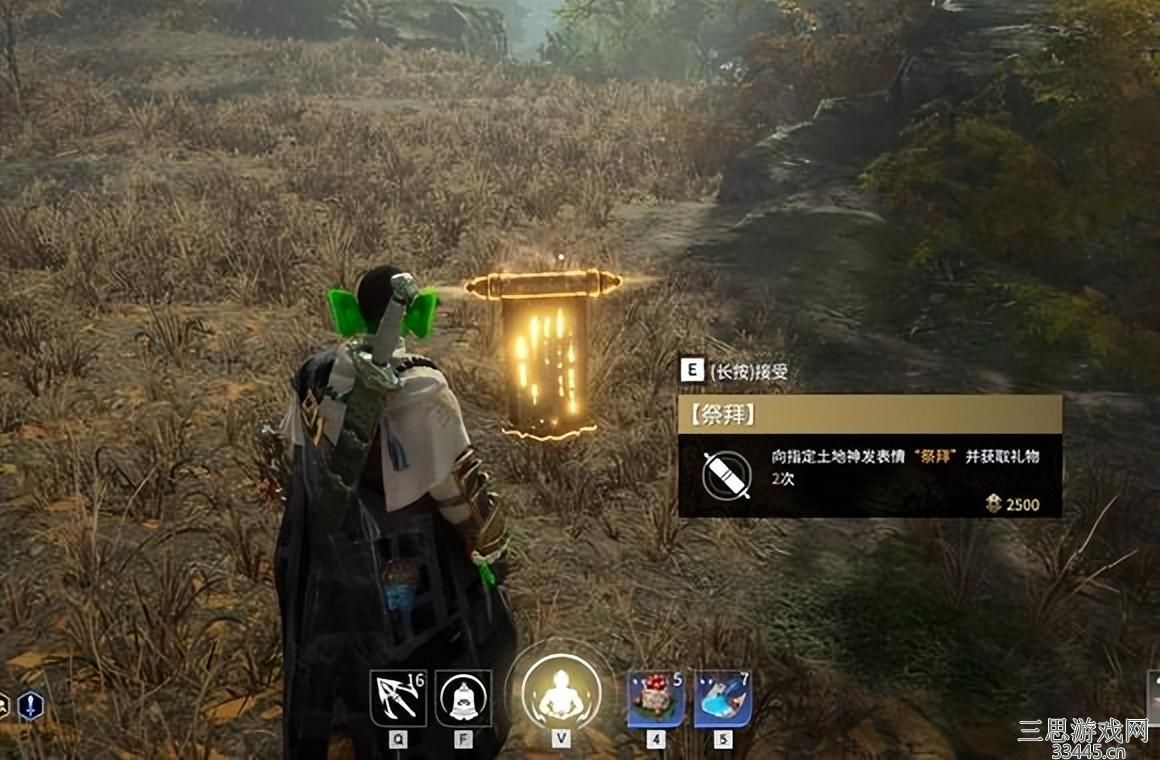 祭拜任务会要求我们随机到一个地图上的土地庙那里使用祭拜动作两次,具体操作为摁住键盘X,打开表情选项,选择祭拜表情动作,默认在表情转盘的正左边,每做完一次会随机掉落一个道具(有概率掉金魂玉),完成两次后即可获得2500暗潮币奖励。