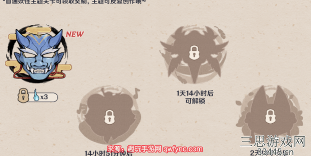 1、从活动的第一天开始,每天早上4:00会解锁一个全新的妖怪主题创作关卡共五个妖怪主题。