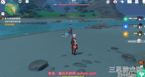 1、去稻妻那里,再去地图东偏南方向,到了这里海边就能找到朝仓并和她交谈。