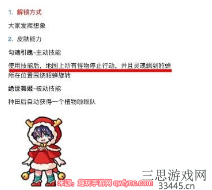 1)玩家可以通过貂蝉皮肤获得让怪物不再移动,灵魂飘近貂蝉绕貂蝉转动的技能。