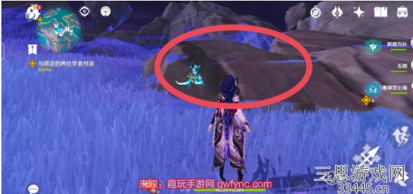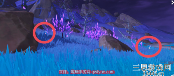 收集后返回刚才紫叶树所在的地方,接着我们向西北望去,再向紫色草丛的地方走去