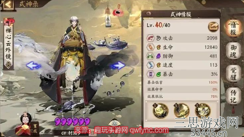 2、从面板上来讲,禅心云外镜还有着高达75%的初始抵抗,是目前的所有式神中,基础抵抗最高的一位。