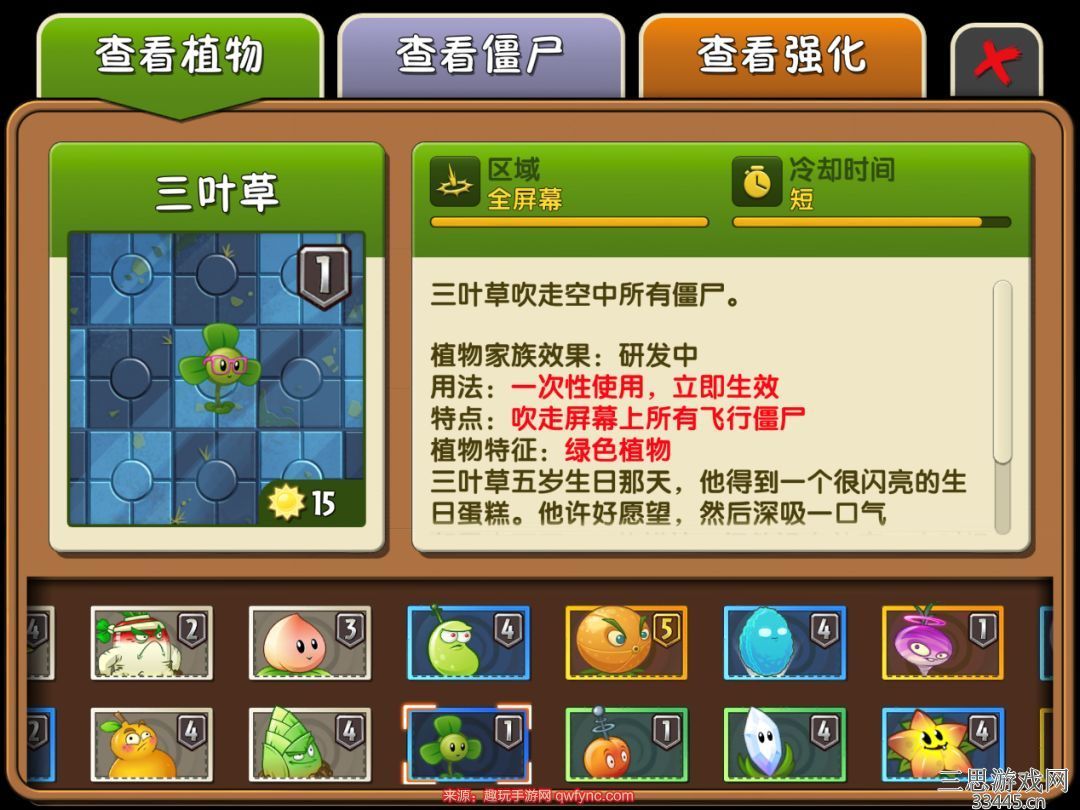 通关神秘埃及之后,就能开启两个世界,建议开启海盗港湾与未来的世界。到了未来的世界只要过了第一关就能邀请到三叶草来参加。只要三叶草一吹起来,形形色色的飞行僵尸就无影无踪了。借助三叶草,打败海盗港湾里形形色色的飞行僵尸不是很容易。