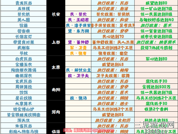 最难做的要算是董仲舒遗物“举贤良之对策”,难办的原因是这件遗物前置需要十点科技点,特殊资源多,所以我推荐如下阵容:张骞(对由于加速生产而丧失的行动力进行补充)、廉颇(提高声望,以举行会议补充资源)、霍光(特殊资源补充损耗)、董仲舒也有部分器物完成条件相近,建议一并完成: