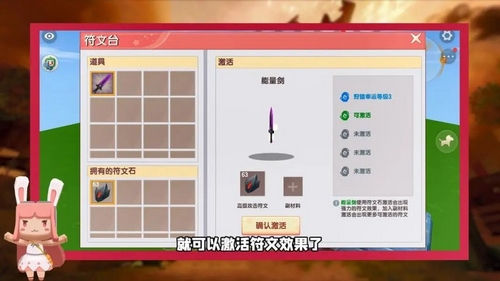 要进行符文合成时,摆放好符文台,打开符文台界面,选择要加符文的工具和符文石材料,就可以激活符文效果。