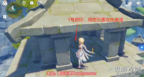 按照上面的说明,用岩元素照亮3号岩印并激活第3个印记。