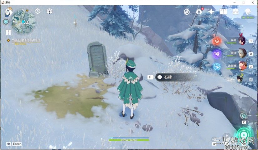②之后,我们就可以传送至神像,根据支线任务提示,在同一层位置的前方还有一个山洞,从这个山洞向里走便可来到我们最终的目的地,雪山顶部。之后我们只需完成任务要求,便可解锁雪山副本所在地,以及最后的第八块石碑。
