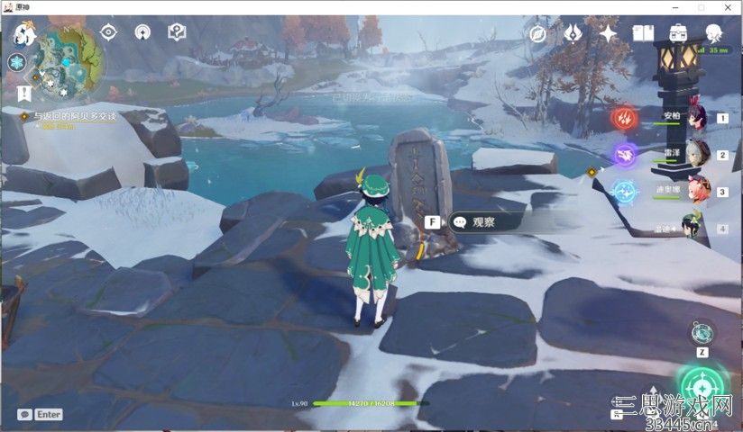 ①首先我们要解锁第三个坚冰碎片,来到星荧洞窟下方,第三个坚冰碎片就在此处,但要先完成边上小冰湖中的挑战并找齐附近的仙灵,才能解开坚冰碎片边上的屏障;