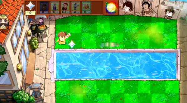豌豆射手、向日葵、樱桃炸弹、坚果、土豆雷、寒冰射手、大嘴花
