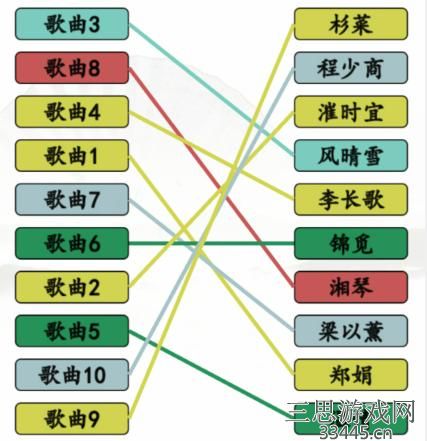 1、这一关是点击左右的神曲,再点击右边的角色进行连线