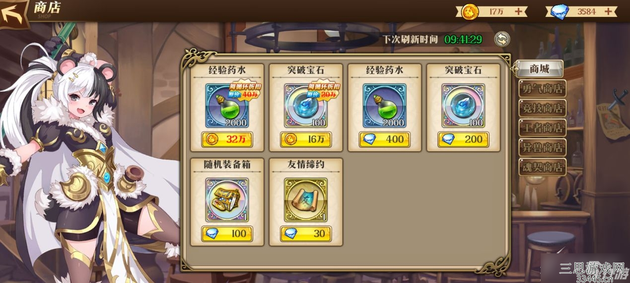 要是恐惧之塔实在爬不动也可以在商城中购买突破宝石,商城有周循环的活动,在周循环活动阶段下,性价比还是比较划算的哦,要是不急于抽卡的话也可以用钻石买,要是买完还不够,在商城里是可以刷新库存的。