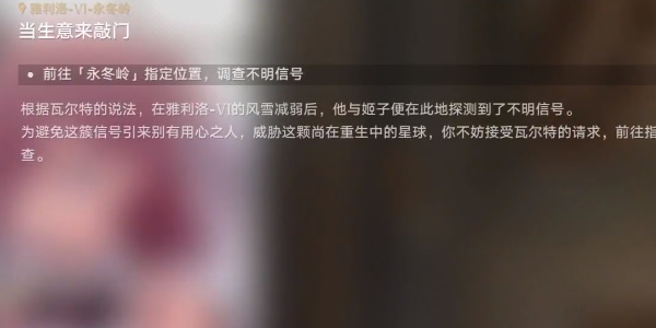 2、领取新任务【前往永冬岭指定位置,调查不明信号0/3】。