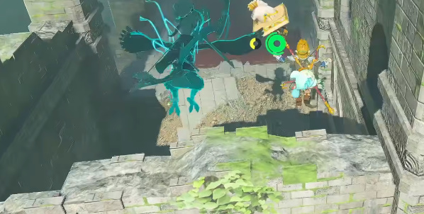 2、来到目标位置以后,我们朝着城堡废墟左侧渠口的位置飞过去。