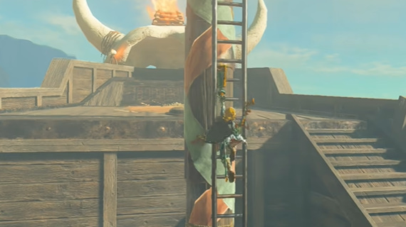 4、开启宝箱后玩家们就是可以从这个爬梯上上到最上方的位置,接着就是可以开启宝箱, 获取到这个宝箱中的蓝色西诺克斯锤子。
