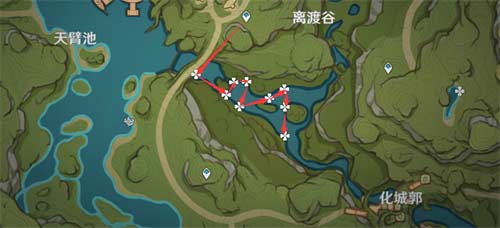 以上就是月莲采集路线介绍了,如果有不定出的小伙伴可以通过图片中的位置进行寻找,但是注意月莲的刷新时间是有限制的,两天左右会刷新一次。