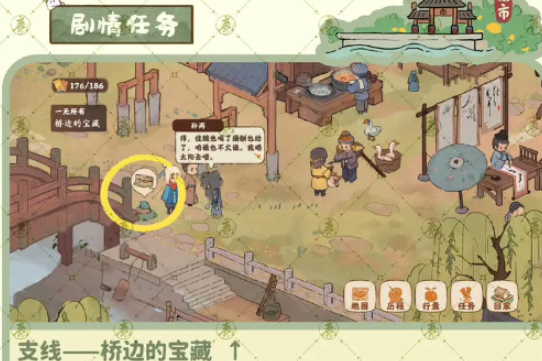 3、主线任务3:帮助小乔找到琴谱1,我们来到集市的如图所示三个地方可以找到。