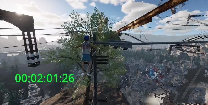 16、随后我们跳上平台,然后往左侧走,然后就可以找到一片街道,找到这个广告牌的时候跳上去就可以了。