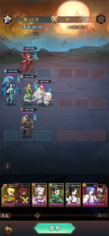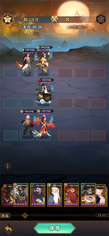 阵容解析:斗战胜佛可以通过全体攻击来压低对方血量,同时分身猴子可以承担一部分伤害以吸引对方的火力;孙悟空则可以使用竖排收割技能来输出,猪八戒则可以通过变身为天蓬元帅加入收割和输出能力。女娲保证全体血量回复,复活给斗战胜佛保证容错。