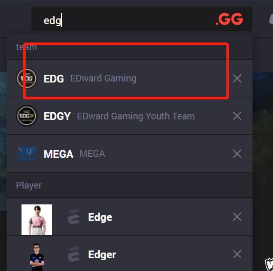 1、首先进入opgg主界面,然后我们点击右侧的搜索框,搜索edg。