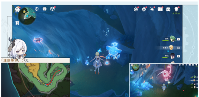 (5)第二阶段和之前一样,需要注意的是,在这个水域里角色会持续掉血,建议经常切换角色,防止角色暴毙。