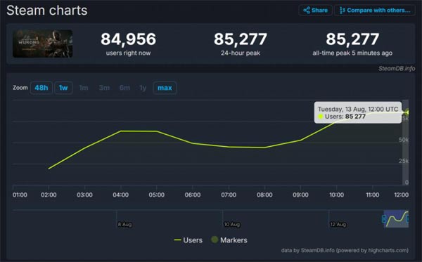 距离游戏正式发售还有 7 天,但显然,很多人已迫不及待——仅仅是一个测试硬件性能的工具,同时在线人数都能超过 8 万,而且就趋势来看,或许人数还会继续上涨。