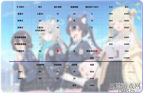 普通关卡、附带关卡、困难关卡、区域普通满星关卡、区域困难满星关卡、TR教程关卡、VOL 1、VOL2