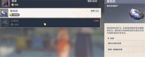 ps:购买夜泊石需要花费1000摩拉,而且每次只能购买5个。