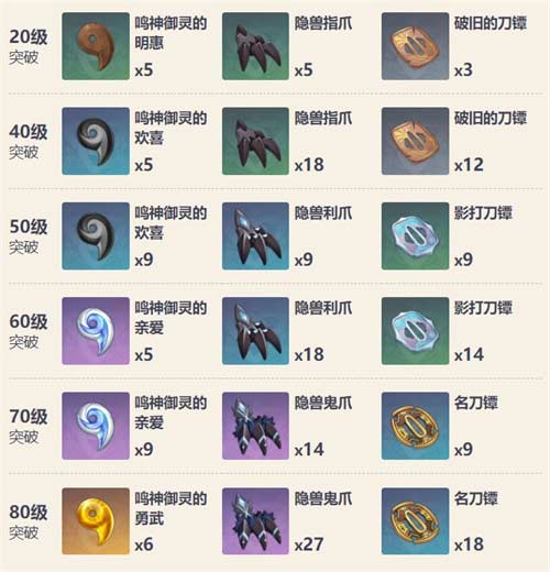 鸣神御灵的明惠可以通过秘境:砂流之庭(周二/周五/周日)获得,隐兽指爪大家可以通过击败兽境幼兽获得,影打刀镡大家可以通过击败野伏众获得。