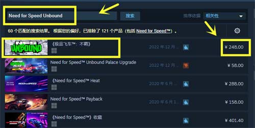 该游戏在steam上,需要大家搜索“Need for Speed Unbound”,才会搜索出来,不然是搜不出来的。