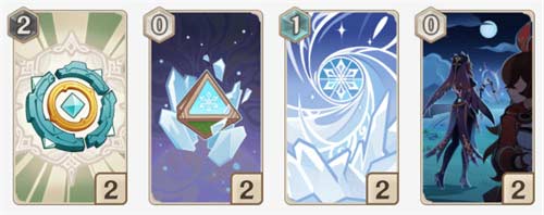 对局思路:第一回合宵宫开始攒能量,第二回合宵宫开大,然后将剩余资源给到神里绫华,最后让神里绫华打收割。