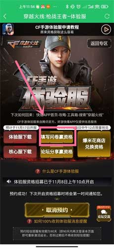 大家进入体验服页面后,点击【填写问卷赢资格】。