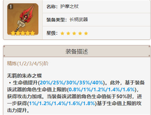 【护摩之杖】对胡桃的提升虽然也很大,但是护摩之杖并不是不可替代的,大家可以使用:决斗之枪、匣里灭辰、千岩长枪、和璞鸢等武器替换,虽然这些武器的加成并没有护摩之杖多,但是也逊色不了多少。