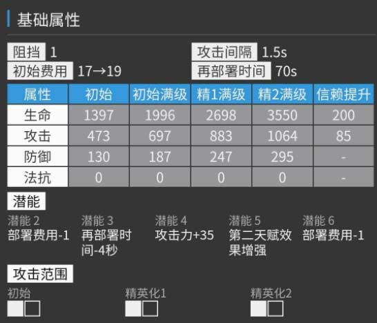 标准的单切剑圣面板(分支:无畏者),面板以高攻高血挡一打一著称。耀骑士临光自身拥有3750的血量和1149的超高攻击力白值,但同时防御较低是威胁其生存的主要原因。